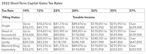 | Tax Filing Status | Tax Bracket | Capital Gains Rate | Short-Term Capital Gains Rate |